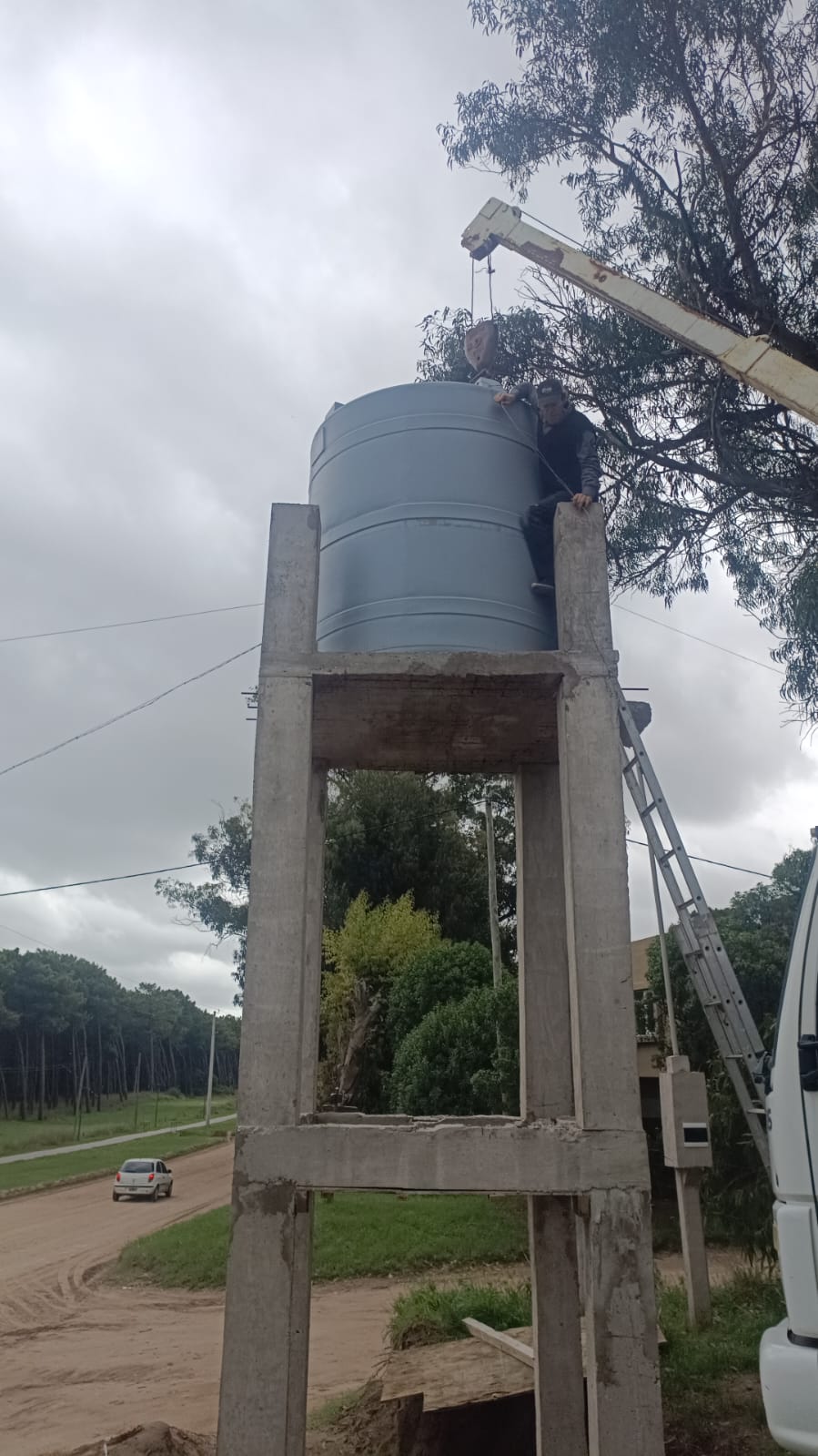 En ese marco, durante los últimos días se concretó la colocación de un tanque de agua de 5000 litros en Villa del Deportista, un paso fundamental para garantizar el abastecimiento en la zona. A su vez, se instaló el pilar trifásico que permitirá, en una etapa posterior, la conexión de energía por parte de la Usina Popular Cooperativa (UPC), necesaria para el funcionamiento de una bomba de 7 HP que será incorporada en la perforación ya realizada.